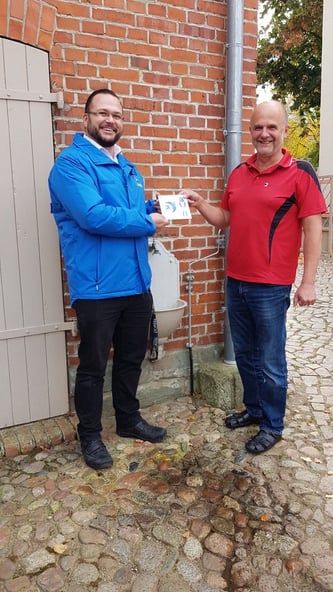19.11.2021, Landkreis: Start der professionellen Mitgliederwerbung. Marko Ferch und Andreas Walther starten in Oranienbaum mit der Werbung neuer Mitglieder an der Haustür. Das Ganze mit einem bewährten kontaktlosen Schutzkonzept. Es wird kein Bargeld angenommen.