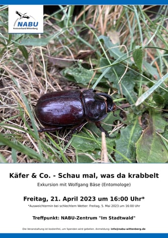 Schon 1980 hat er die kleine Publikation „Die Käfer des Wittenberger Raumes“ herausgebracht. Darüber hinaus gehören Wanzen, die keine Käfer sind, ins Interessengebiet von Wolfgang Bäse. Auch heute noch geht der Lehrer im Ruhestand voller Begeisterung mit dem „Klopfschirm“ und einem Glas seinem Hobby intensiv nach. Am Freitag, dem 21. April nahm er alle kleinen und großen Interessierten mit in die Natur. Mitzubringen sind für die eineinhalb-stündige Exkursion außer wetterfester Kleidung und Schuhen gerne auch ein Marmeladenglas und (wer hat) eine Lupe.
