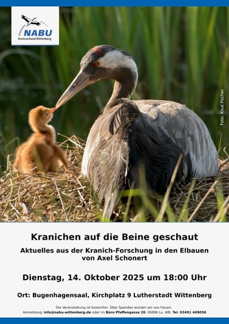 Anmeldung: info@nabu-wittenberg.de oder im Büro Pfaffengasse 28, 06886 Lutherstadt Wittenberg, Tel. 03491 409058