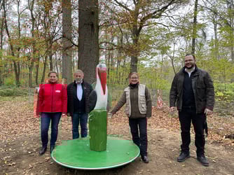 16.11.2021, NABU-Zentrum/Stadtwald: Town&Country Wittenberg (HIS) und die Town&Country-Stiftung spenden jeweils 1.000 Euro für die Sanierung des Storchenkarussels. Am Dienstag konnte es im neunen Glanz übergeben werden durch den Geschäftsführer Burkhard Müller.