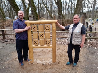 06.05.2021, NABU-Zentrum/Stadtwald: Tobias Ulbrich vom Förderverein Natur- und Erlebniszentrum Stadtwald e.V. nimmt mit seinem Sohn am internen Firmenlauf teil und holt damit Geld nach Wittenberg. Ein neues Spielgerät bereichert den Spielplatz am NABU-Zentrum "Im Stadtwald".