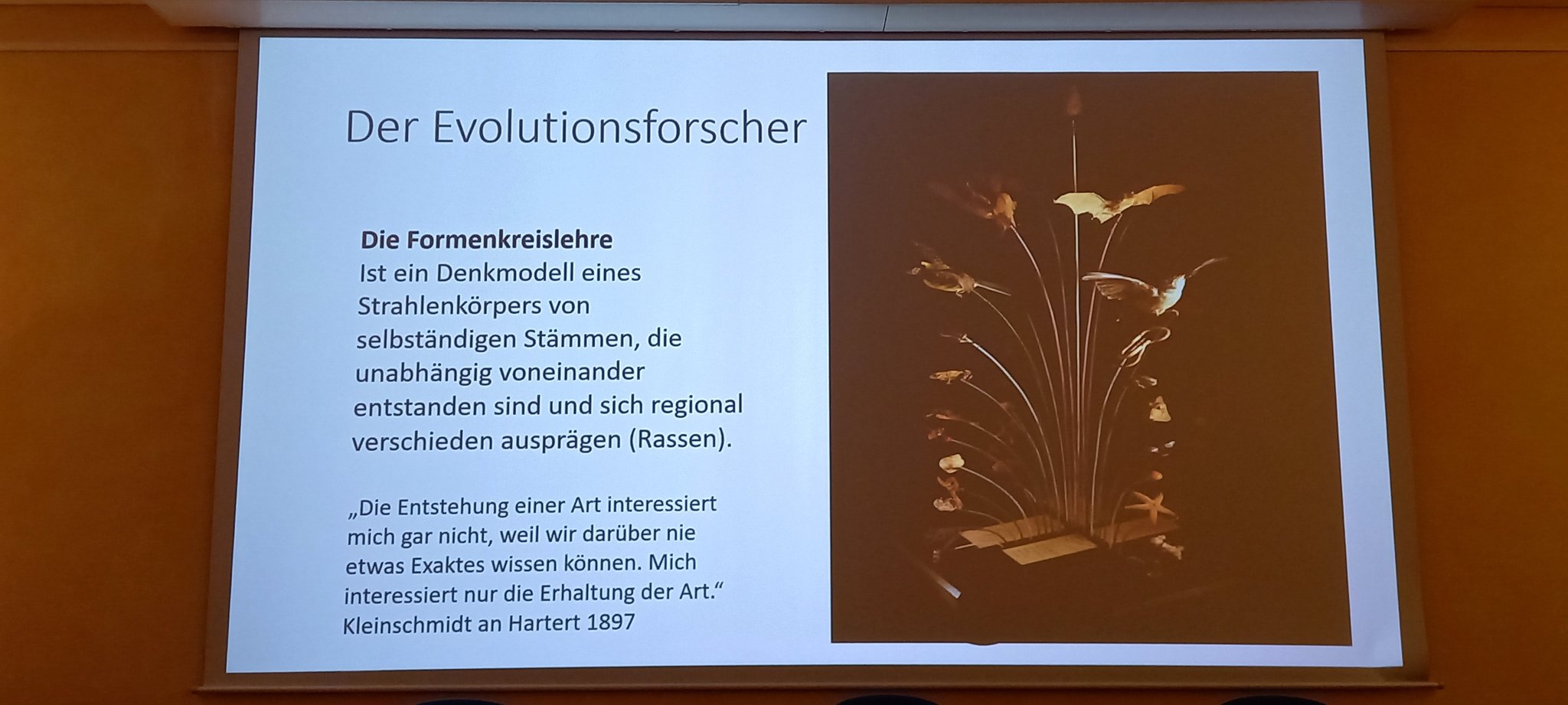 Siegrun Höhne beleuchtete in ihrem Vortrag den Theologen und Pfarrer Kleinschmidt und sein christliches Weltbild, mit dessen Hintergrund er die Forschung und Entwicklung seiner Rassenlehre der „Formenkreislehre“ entwickelte und in verschiedenen Büchern veröffentlichte. Kleinschmidts Biografie wurde kritisch beleuchtet: Vom Nationalsozialismus und auch dem Sozialismus versprach er sich Aufbrüche, zog sich aber wohl jeweils rasch enttäuscht zurück.