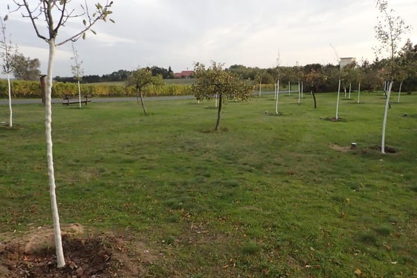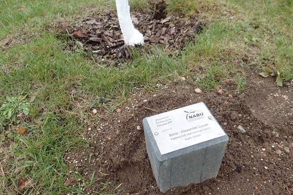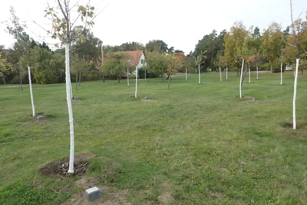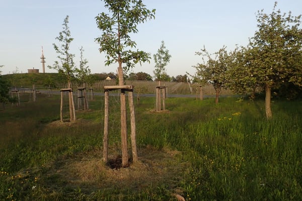 Durch die erfolgte Kennzeichnung der 36 Bäume der 2021er-Pflanzung sind die jeweiligen Obstsorten kenntlich. Haltbare Metallplaketten wurden an eingegrabenen Leichtbeton-Palisaden befestigt. Auf den Schrifttafeln sind an allen 36 Bäumen auch Angaben zu den Patenschaften vermerkt.